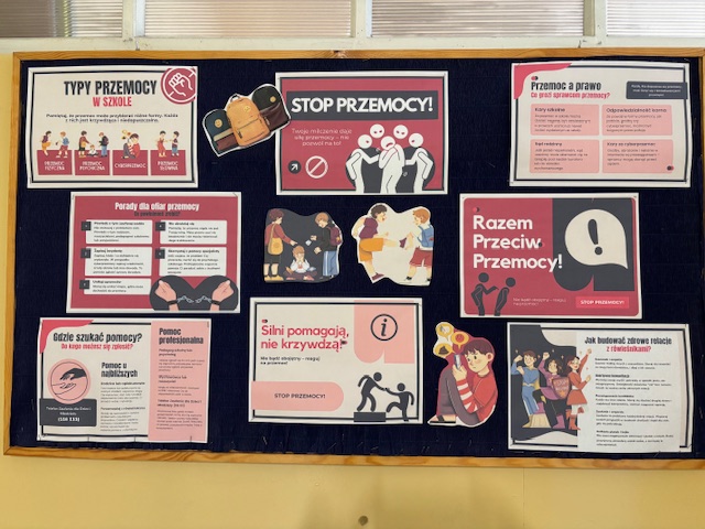 W minionym tygodniu nasza szkoła brała udział w realizacji ogólnopolskiej inicjatywy - „Tydzień o Przeciwdziałaniu Przemocy Rówieśniczej”. Celem podejmowanych działań było zwrócenie uwagi uczniów na problem przemocy – zarówno fizycznej, jak i psychicznej – oraz kształtowanie postaw opartych na szacunku, empatii i odpowiedzialności za drugiego człowieka. W ramach tygodnia odbyły się spotkania z funkcjonariuszami policji, którzy omówili konsekwencje prawne agresywnych zachowań oraz sposoby reagowania w sytuacjach zagrożenia, szczególnie zwracając uwagę na zjawisko cyberprzemocy. Podczas wybranych lekcji uczniowie uczestniczyli w zajęciach poświęconych komunikacji bez przemocy i rozwiązywaniu konfliktów. Rodzicom zostały przekazane materiały edukacyjne wspierające rozwój kompetencji wychowawczych. W szkole została przygotowana również tematyczna gazetka ścienna, a poprzez radiowęzeł uczniowie nadali specjalną audycję poświęconą idei przeciwdziałania przemocy i budowaniu pozytywnych relacji.