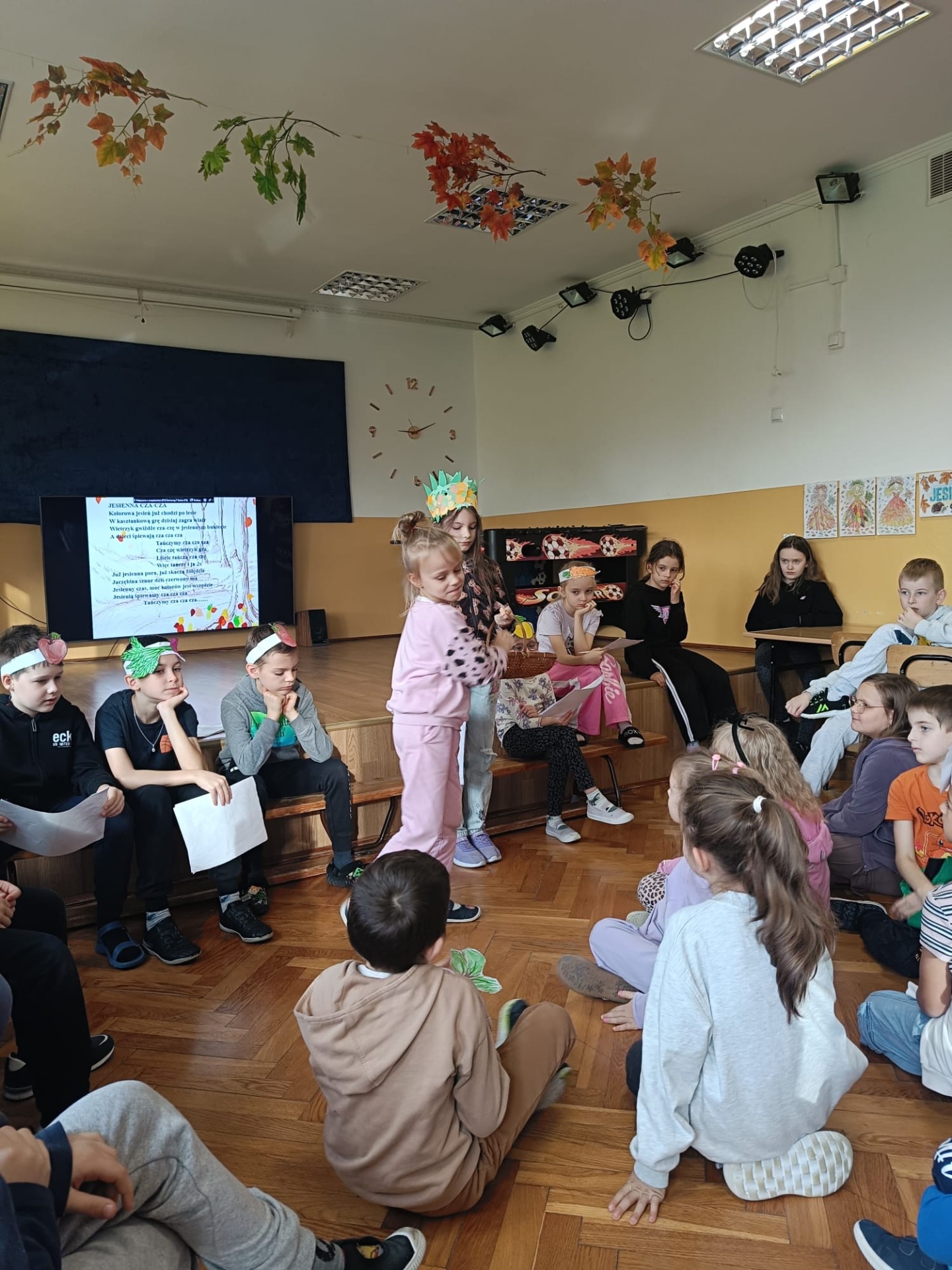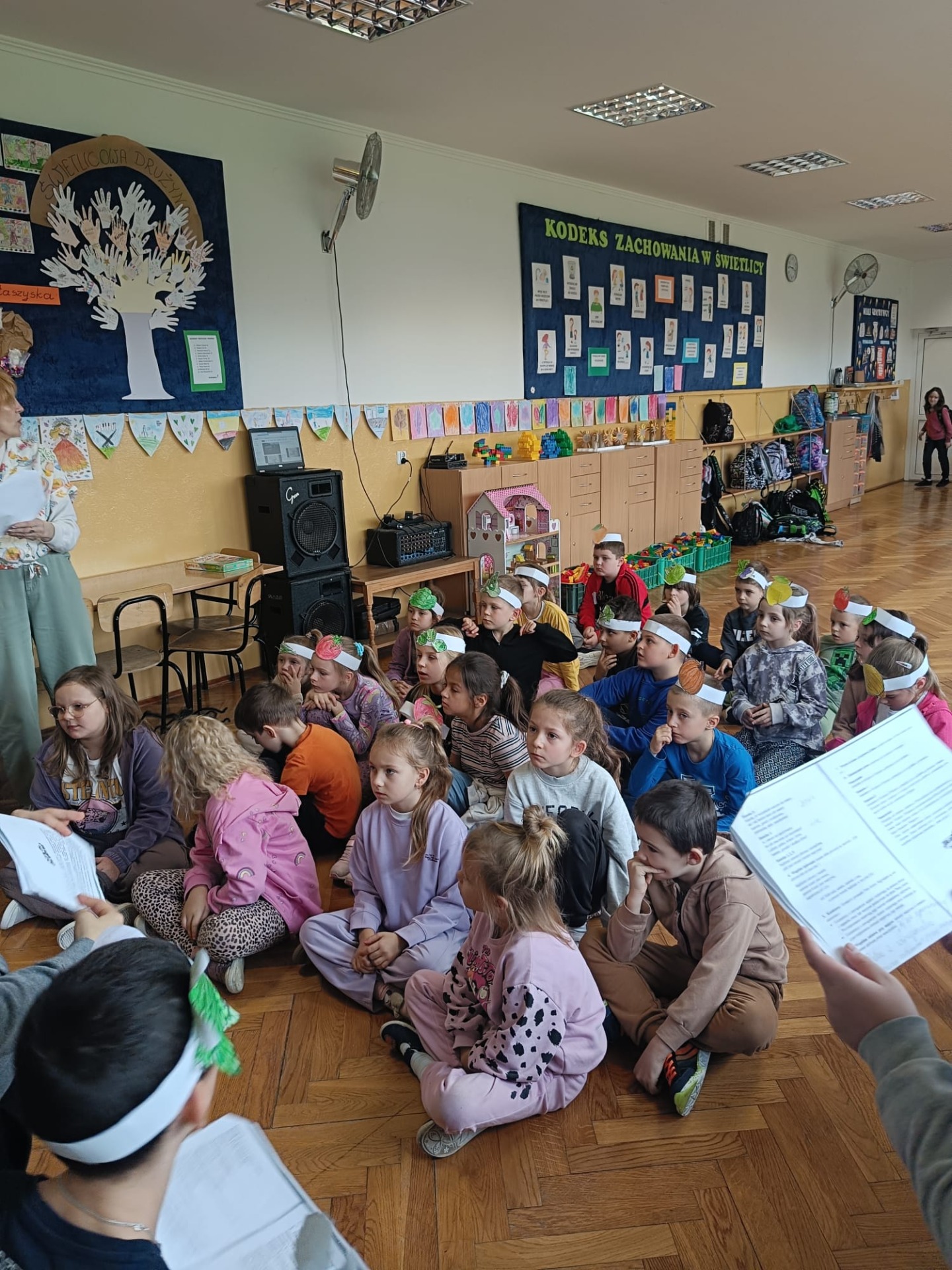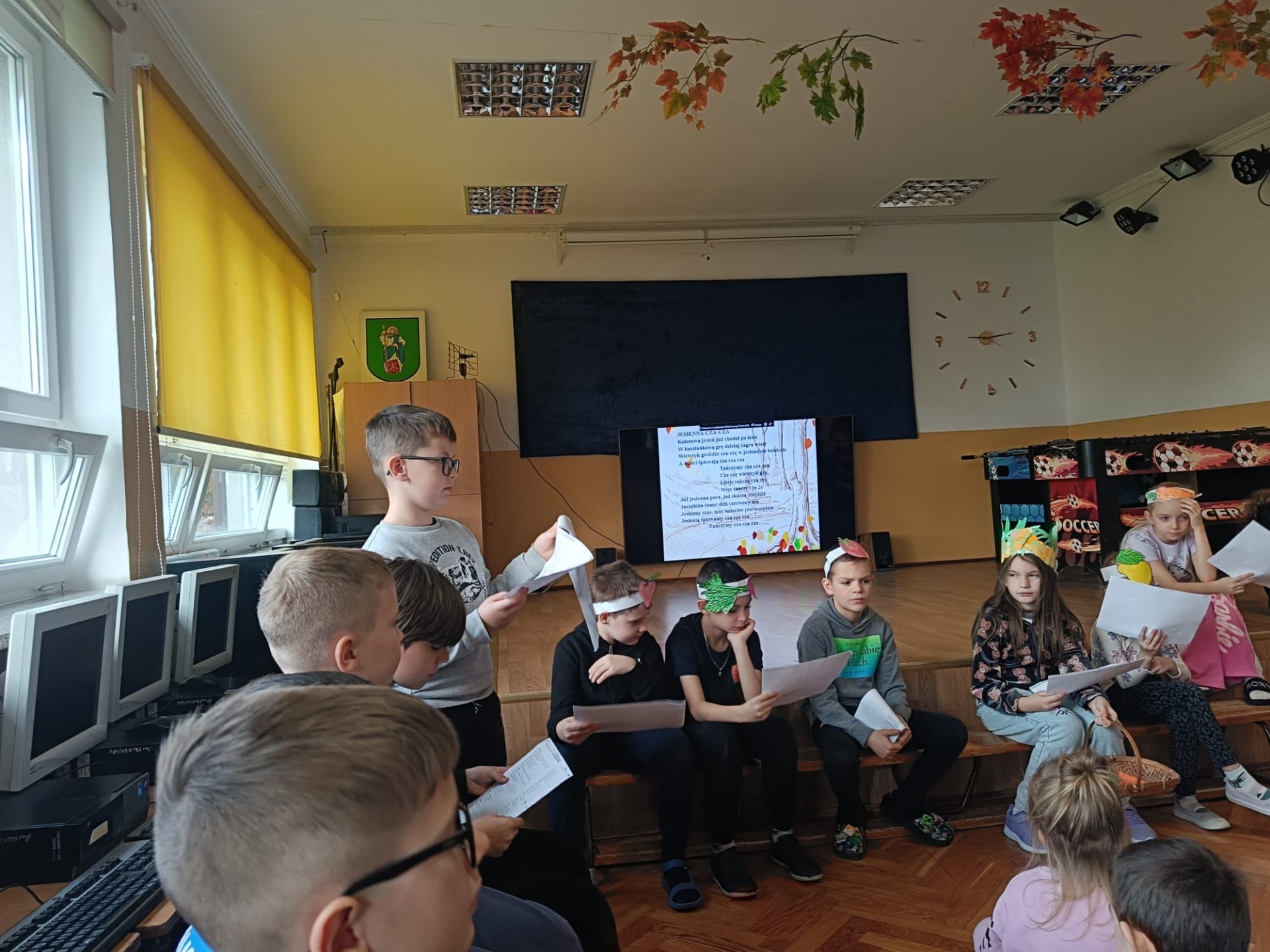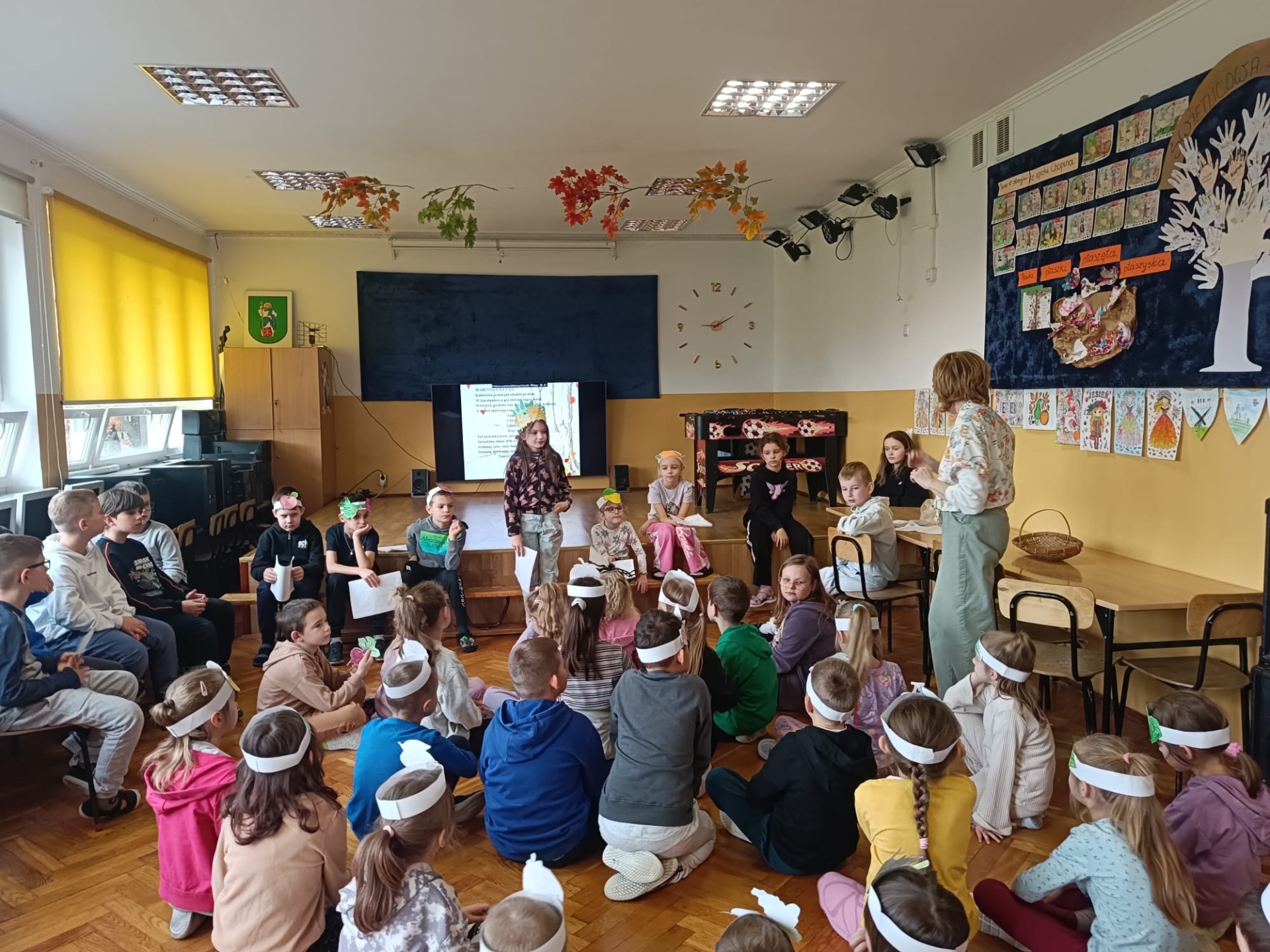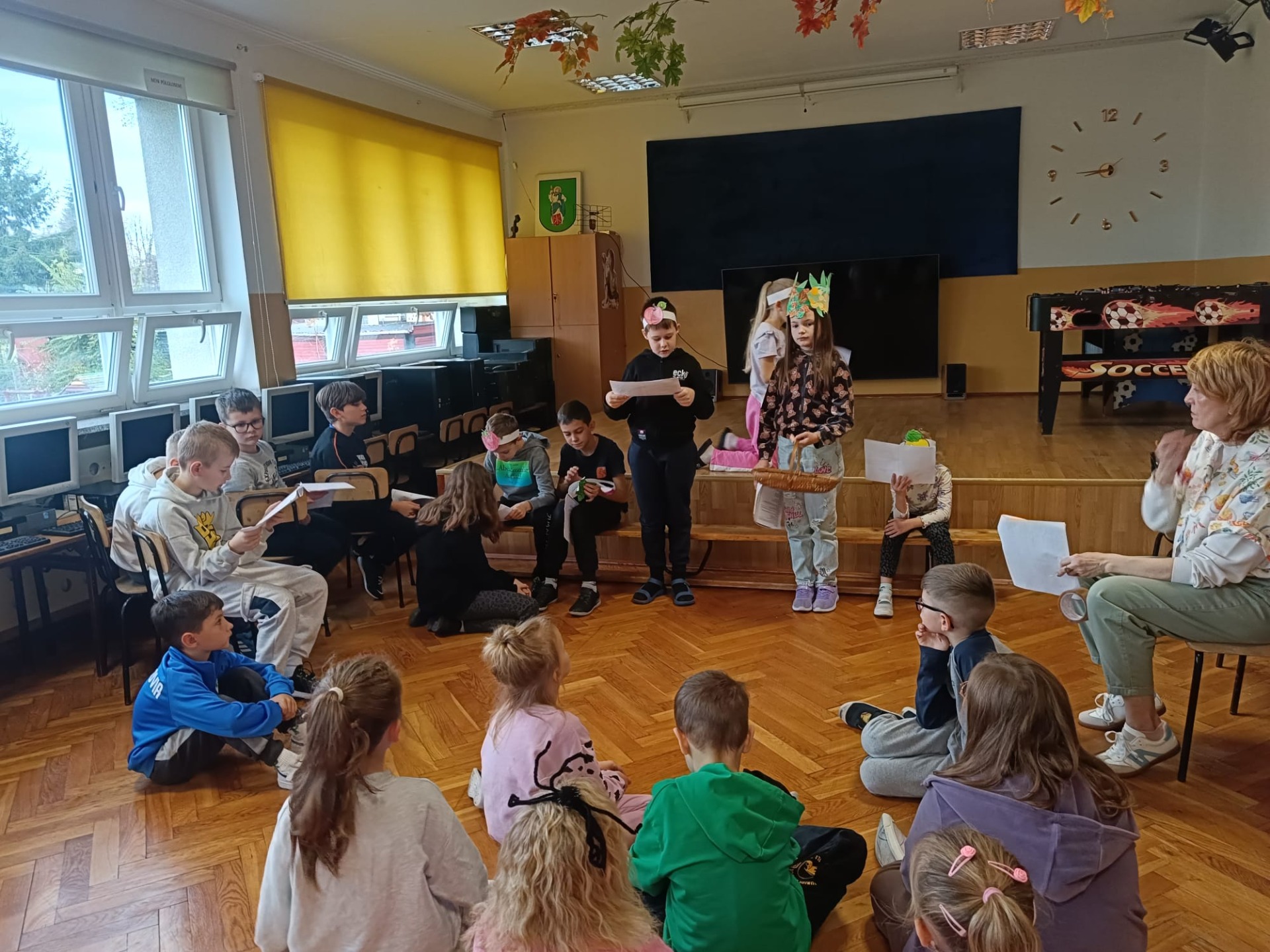 W ramach ,, Programu dla szkół ” 23 października 2025 r. świetliczaki z klas: I b, II b, III c wraz z nauczycielami zorganizowali ,,Jesienny Bal Owoców i Warzyw”, na którym gościli uczniowie klasy I c. Spotkanie składało się z inscenizacji pt. ,,Kraina Witamin”, zagadek owocowo – warzywnych oraz zabawy tanecznej do utworów promujących spożywanie soków, warzyw i owoców.
