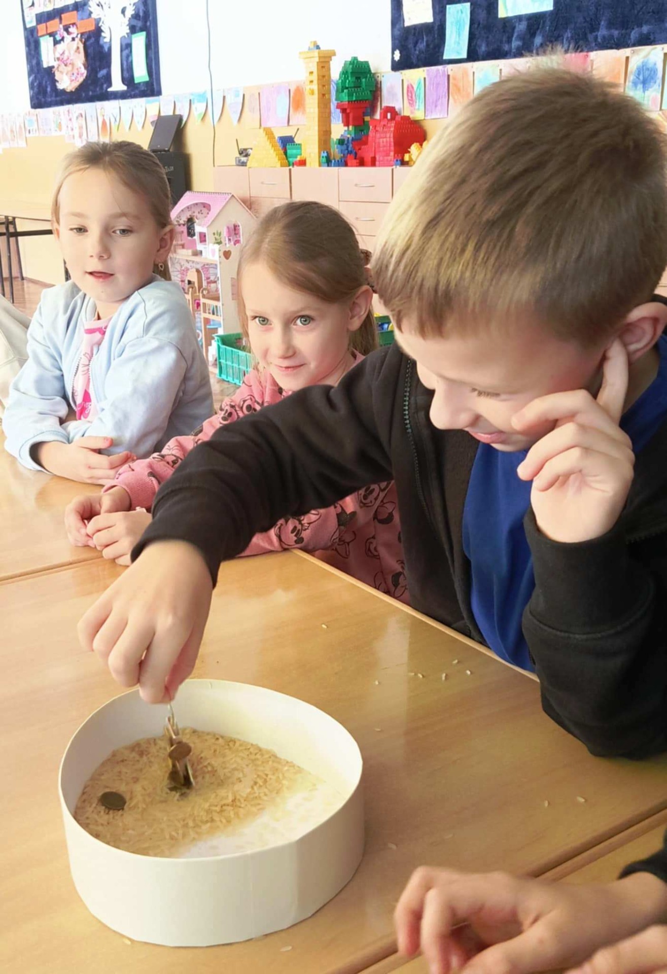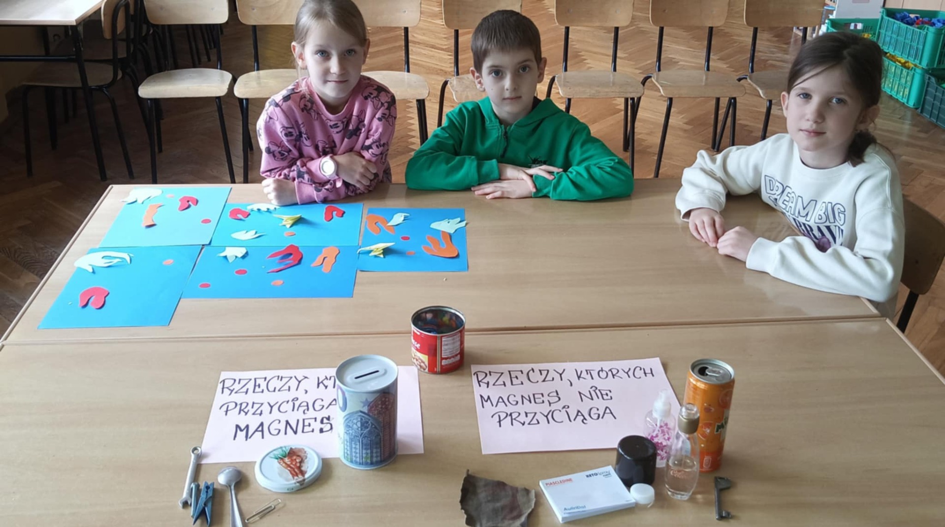 27 października wychowankowie świetlicy szkolnej uczestniczyli w kolejnych zajęciach z cyklu „Nauka wokół nas”, poświęconych tym razem fascynującemu światu magnesów. Podczas spotkania uczniowie poznali właściwości magnesów oraz dowiedzieli się, które materiały reagują na ich działanie. W części praktycznej z dużym zaangażowaniem wykonywali doświadczenia, sprawdzając, jakie przedmioty przyciągane są przez magnes, a które pozostają obojętne. Dużo emocji i radości dostarczyła zabawa „Magnetyczne poszukiwania skarbów”, podczas której w pudełku z ryżem ukryto drobne metalowe elementy. Zadaniem uczestników było odnalezienie ich przy pomocy magnesu. Na zakończenie zajęć dzieci wykazały się kreatywnością, tworząc własne magnetyczne obrazki. Z wykorzystaniem magnesów i metalowych elementów powstały ciekawe, ruchome kompozycje, będące doskonałym podsumowaniem zdobytej wiedzy i wspaniałej zabawy.