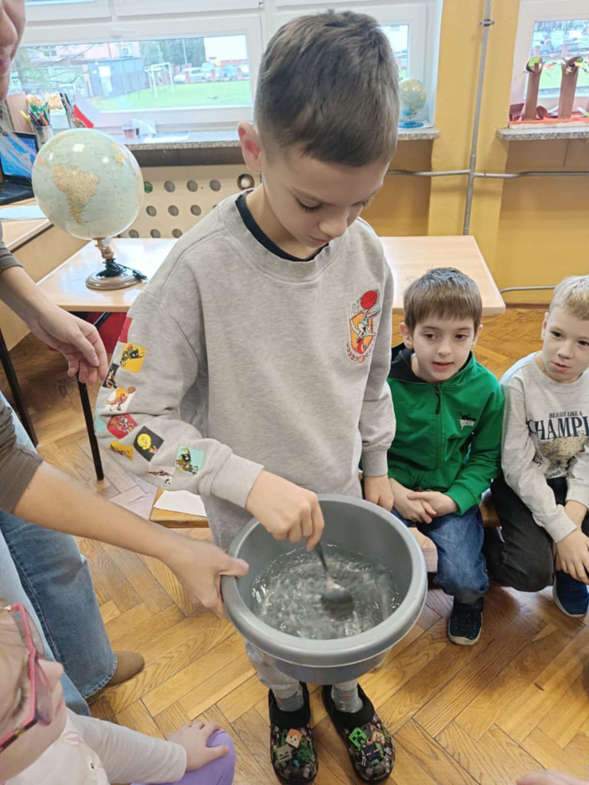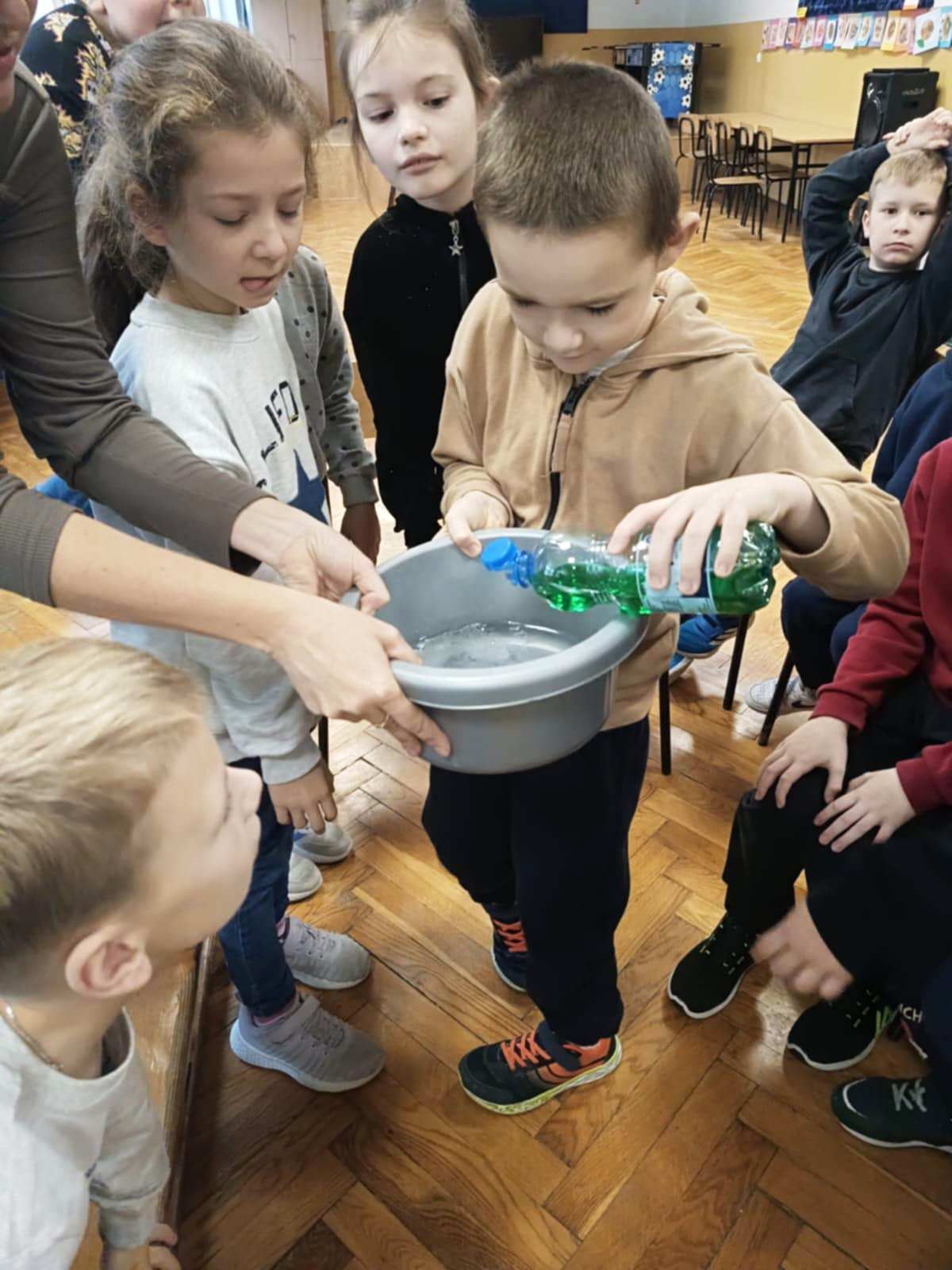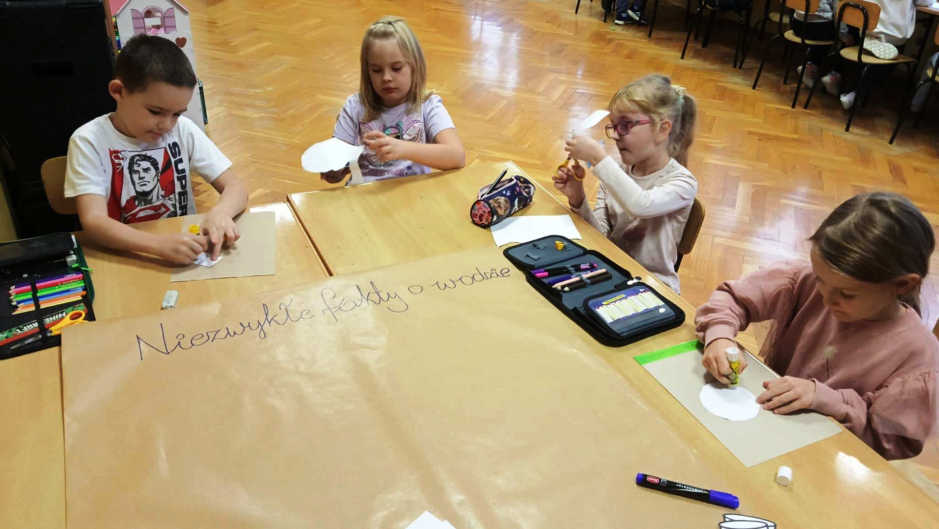 Wychowankowie świetlicy poznali ciekawostki ze świata nauki dotyczące niezwykłych właściwości wody. Podczas zajęć dowiedzieli się, jaką część powierzchni Ziemi pokrywa woda, dlaczego nie ma ona smaku ani barwy oraz w jaki sposób powstają fale i wiry. Uczniowie odkrywali również, czym jest napięcie powierzchniowe jakie stany skupienia może przyjmować woda. Na zakończenie zajęć mieli okazję samodzielnie przeprowadzić eksperymenty związane z omawianymi zagadnieniami, a następnie wykonali plakat przedstawiający najciekawsze informacje, których się nauczyli. Dzięki temu mogli podsumować swoją wiedzę i zaprezentować ją innym.