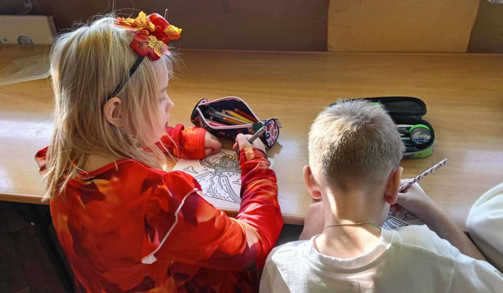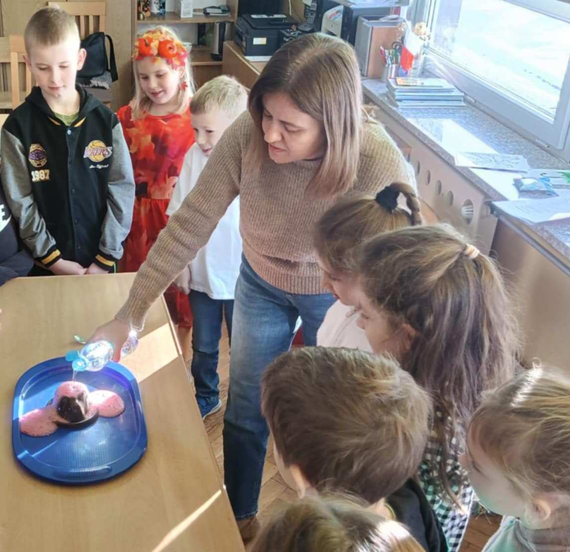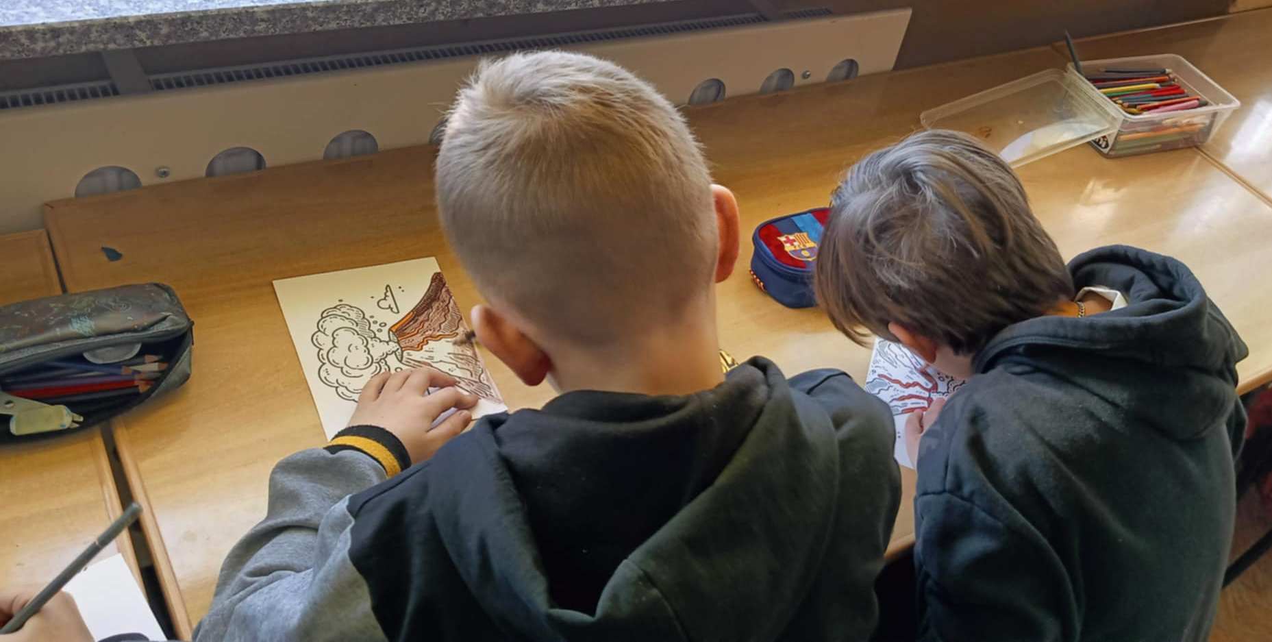 Podczas zajęć dzieci wcieliły się w rolę młodych naukowców i z dużym zainteresowaniem odkrywały tajniki nauki. W części „Tajemnicze pismo - niewidzialny atrament” uczniowie poznali zjawisko utleniania oraz dowiedzieli się, czym jest reakcja chemiczna. Następnie stworzyli własne niewidzialne wiadomości, zapisując sekretny tekst na kartkach papieru przy użyciu soku z cytryny, który po podgrzaniu ujawniał ukryte treści, wywołując wiele radości i zaciekawienia. Kolejnym odkryciem była fascynująca podróż do wnętrza Ziemi. Dzieci, poprzez film edukacyjny dowiedziały się, dlaczego wulkany wybuchają oraz jakie procesy zachodzą podczas erupcji. Zdobyta wiedza została utrwalona podczas eksperymentu „Wulkan w butelce”, który w efektowny sposób symulował erupcję wulkanu. Zajęcia rozwijały ciekawość poznawczą, kreatywność oraz umiejętność obserwacji, a nauka przez doświadczenie sprawiła dzieciom wiele satysfakcji.