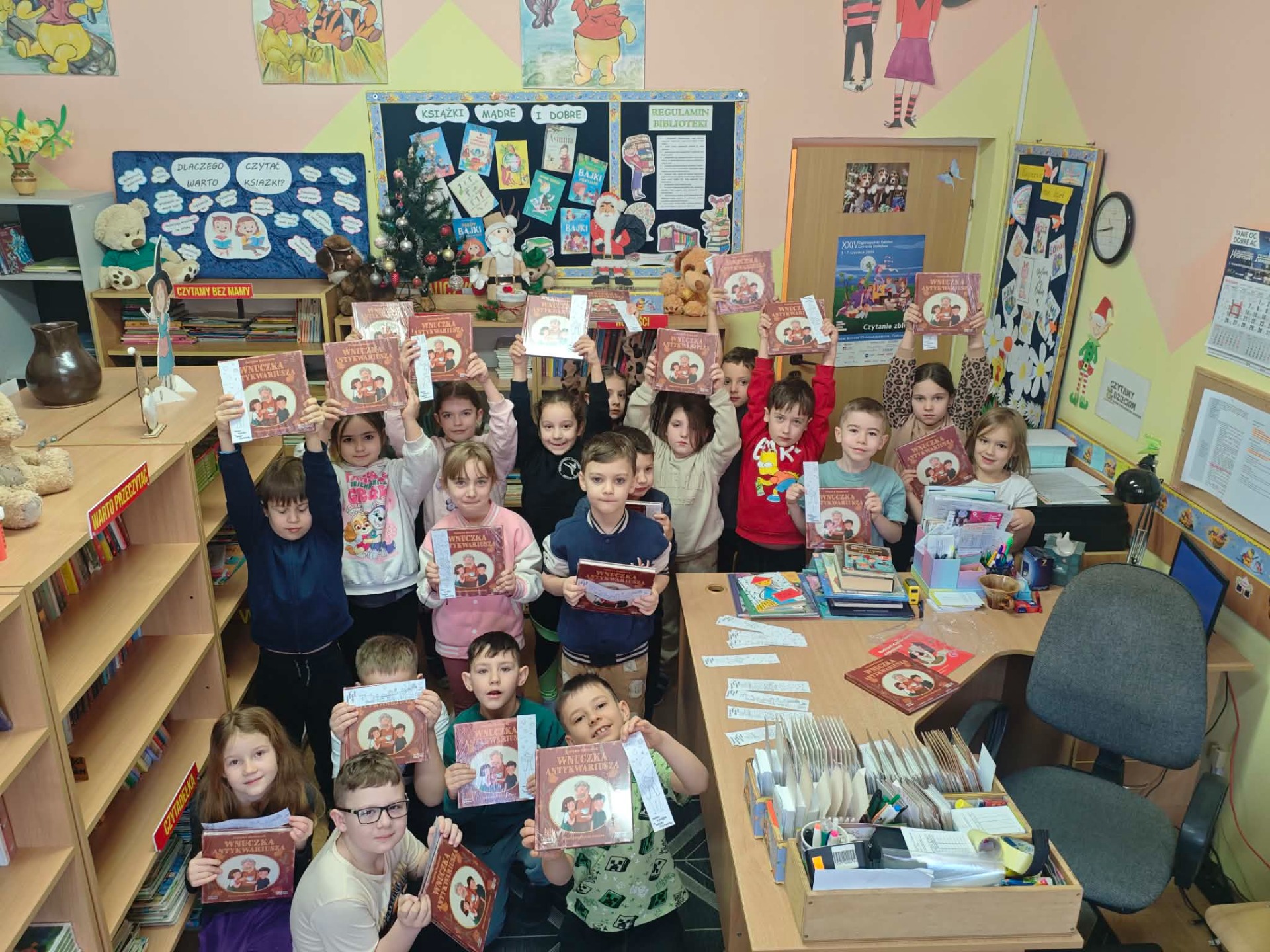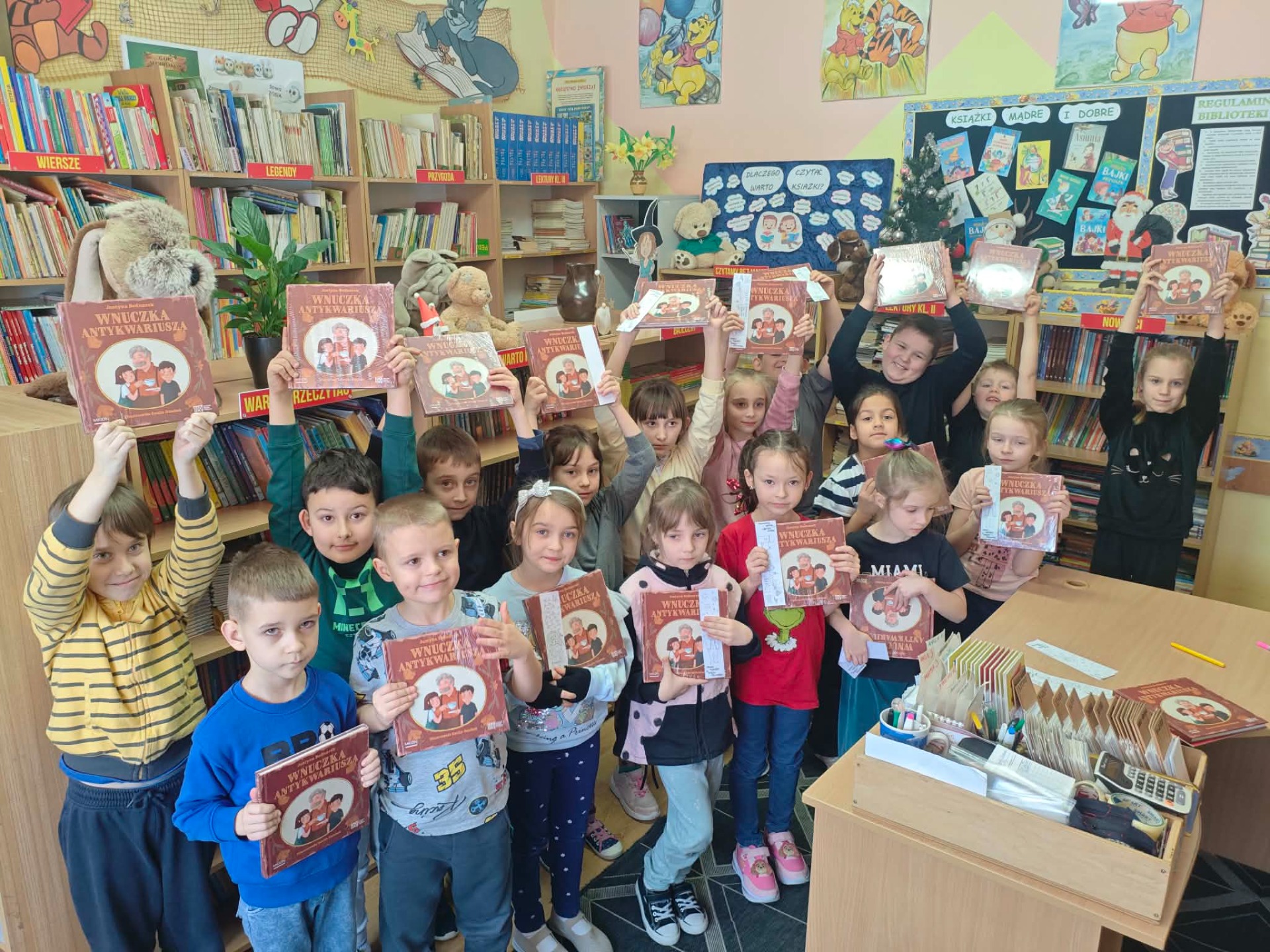 Wszyscy wiemy, że dobrze dobrane książki rozwijają umysł i emocje dzieci, kształtują ich kompetencje językowe i rozbudzają wyobraźnię. Czytanie książek może stać się nie tylko wielką przyjemnością, ale przede wszystkim wspaniałą okazją do budowania bliskości oraz silnych i trwałych więzi rodzinnych. W tym roku szkolnym nasza szkoła, po raz kolejny, uczestniczy w ogólnopolskiej kampanii społecznej Instytutu Książki „Mała książka – wielki człowiek”, która podkreśla, jak ważne jest rozwijanie czytelniczej pasji wśród dzieci. W ramach tej kampanii wszyscy uczniowie klas pierwszych otrzymali książkę pt. „Wnuczka antykwariusza” autorstwa Justyny Bednarek.